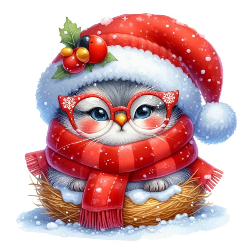 Watercolor-Christmas-Kitten-Clipart-127441905