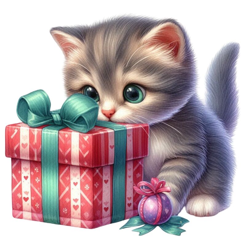 Watercolor-Christmas-Kitten-Clipart-127441905